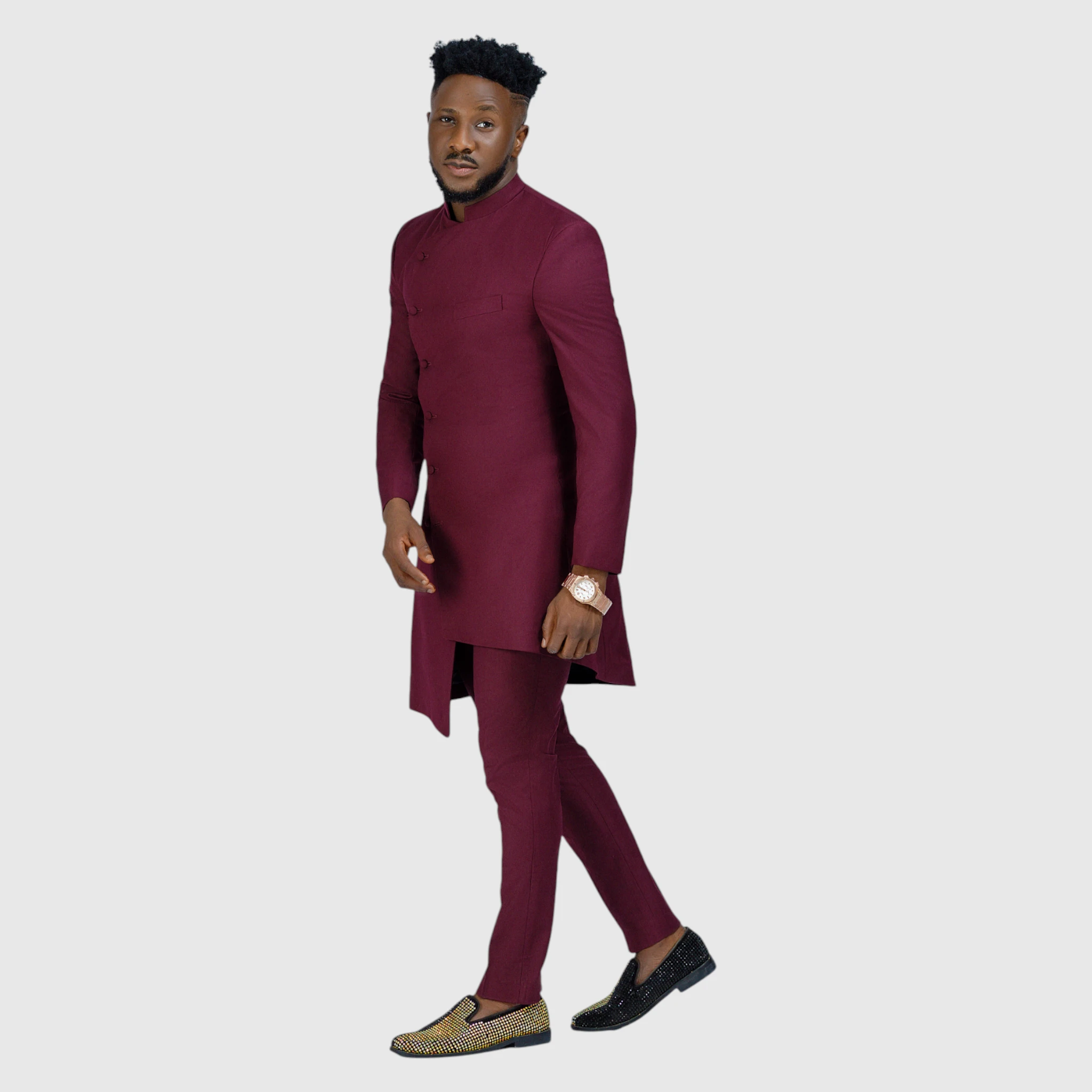 Exude sophistication with the Burgundy Modern Safari 2-piece, tailored from 100% Grade C Cashmere for a refined and comfortable fit. Its rich burgundy tone paired with a sharp modern safari cut makes it a standout piece for men who command presence. Perfect for high-profile events, corporate gatherings, or elegant occasions, this suit blends luxury with bold minimalism.